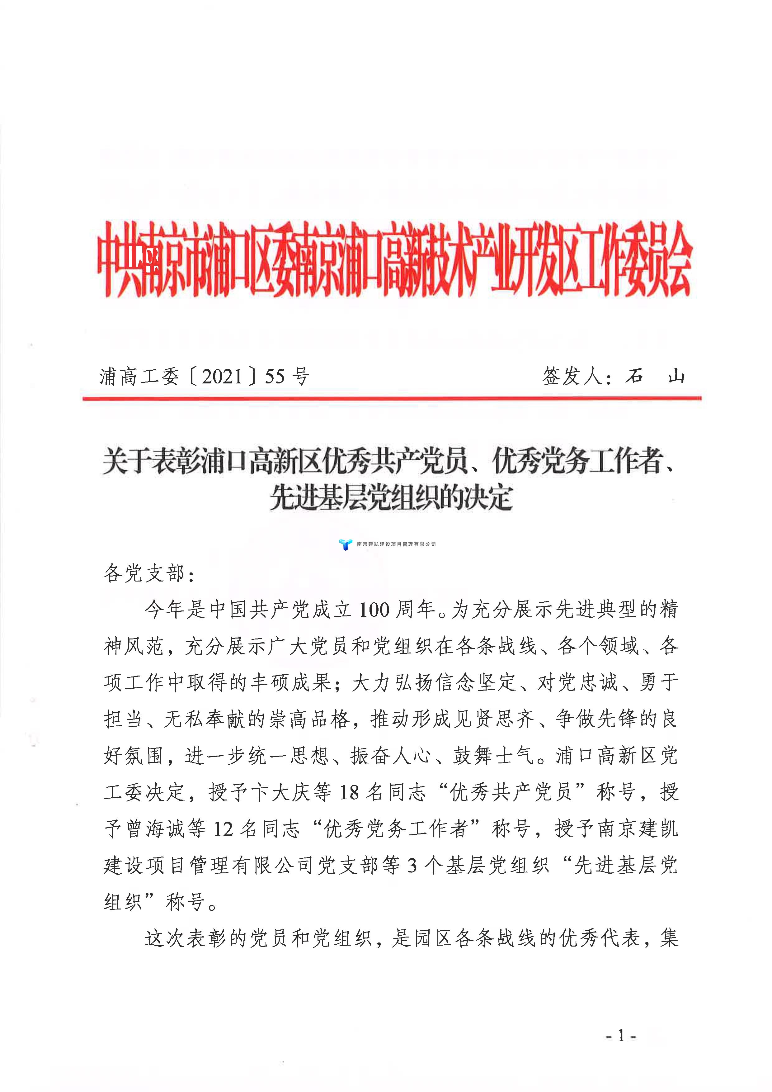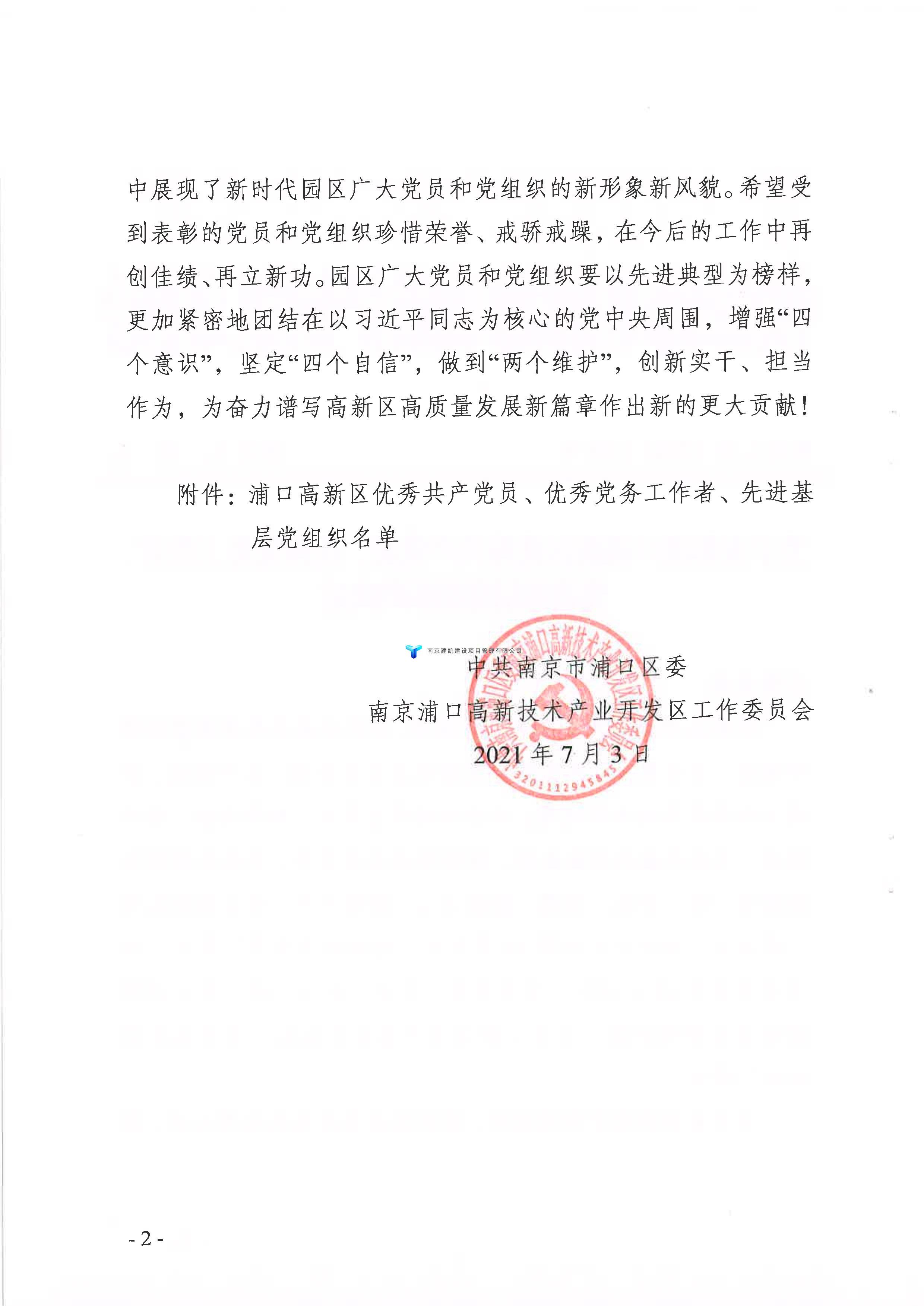 公司荣获“浦口高新区先进基层党组织”并表彰!