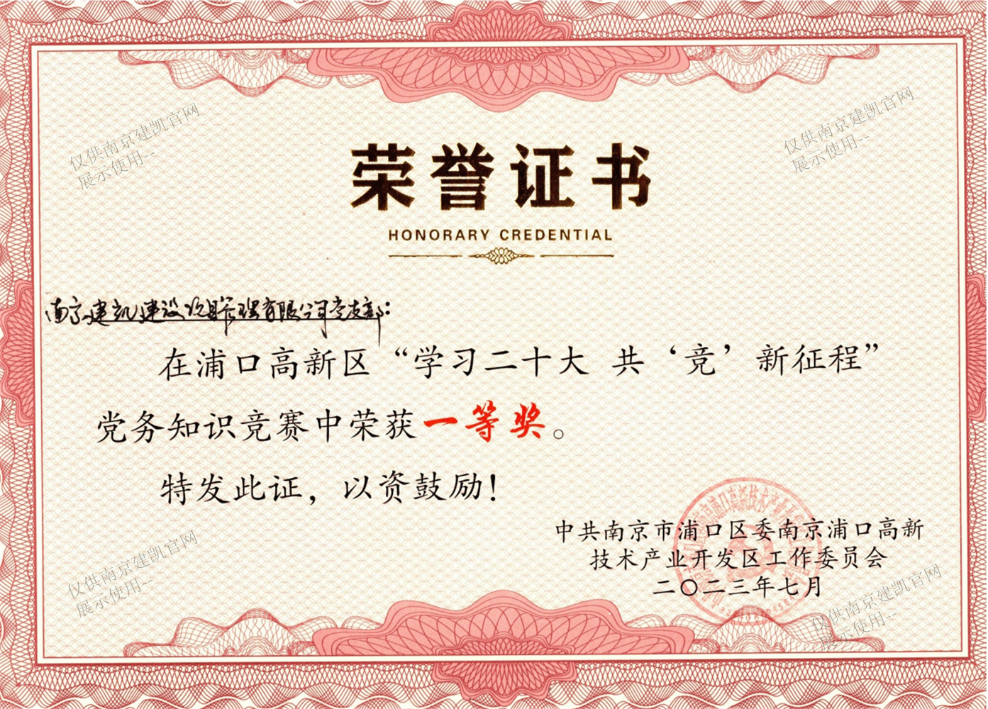 热烈祝贺我司党支部荣获浦口高新区“学习二十大 共竞新征程”党务知识竞赛一等奖