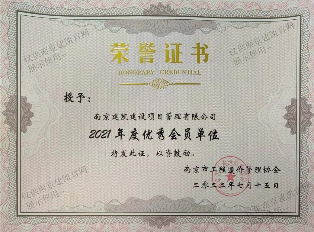 祝贺我司荣获南京市工程造价管理协会“2021年度优秀会员单位”