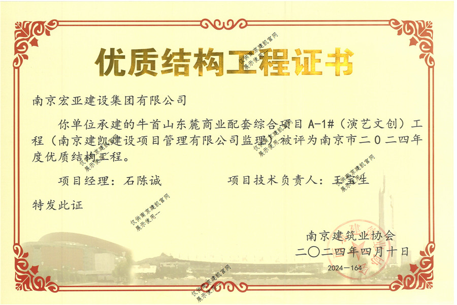 牛首山东麓商业配套综合项目A-1#(演艺文创)工程荣获“南京市优质工程奖”