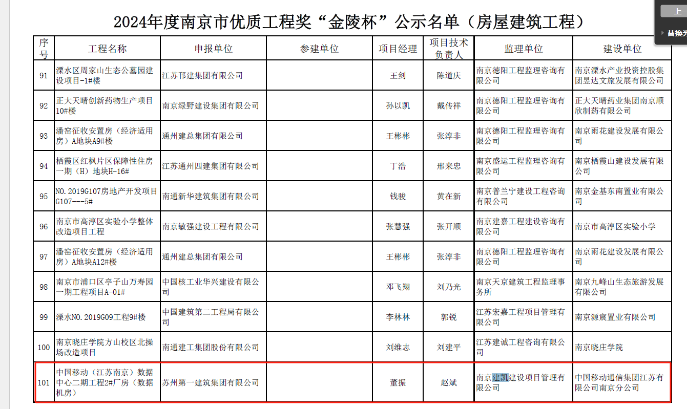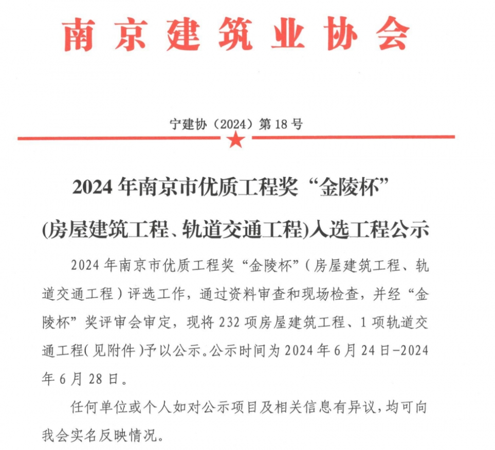 (2024年10月28日)南京建筑业协会《南京市优质结构工程公示(2024.03.01-2024.08.31)》